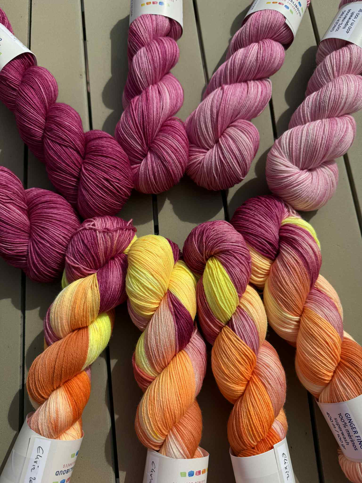 Découvrez la Ginger Fingering, une laine 100 % mérinos superwash, douce et lumineuse, teinte à la main en marmite.
